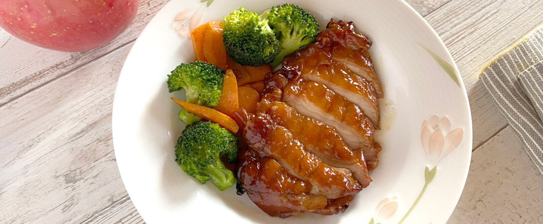 柔らかく適度に脂の乗った鳥取県産「鳥取のとり」を、フルーツのピューレや塩麴に漬け込み、焼き上げました。