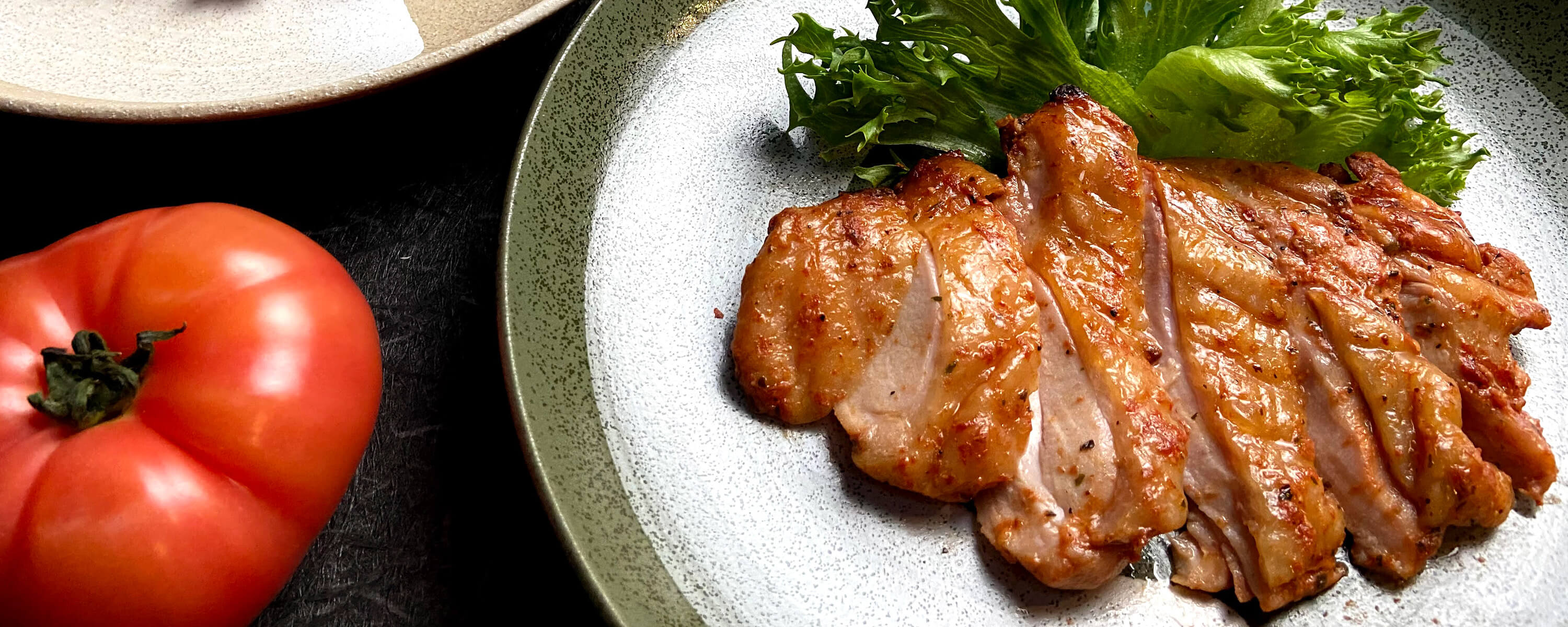 チキンステーキは鳥取県の恵みをたっぷりと使った贅沢な一品です。鶏肉には鳥取の塩麹や県産フルーツのピューレを絶妙なバランスで使用し、味付けを施しています。