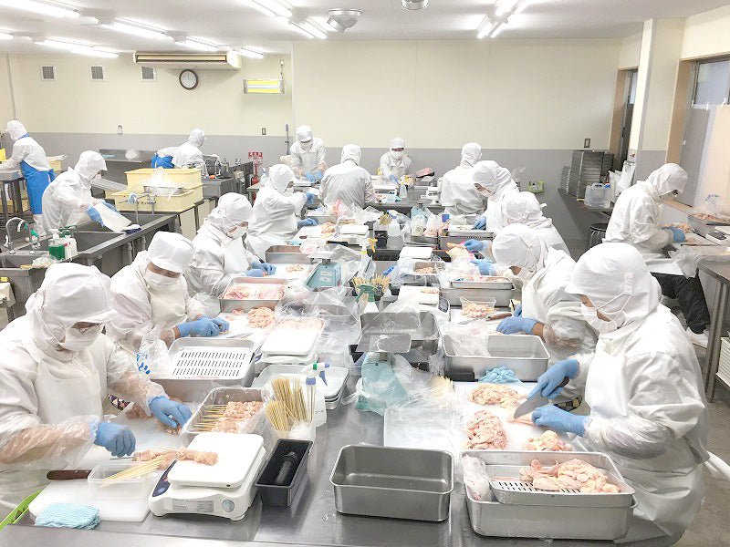 大山どりの鶏肉をフレッシュなうちに串打ち・凍結